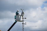 支線を張り替え,風向風速計,日射計,降水量計を更新しました。高所での作業ご苦労様でした。